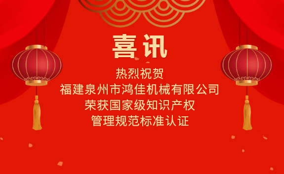 喜(xǐ)訊|熱烈祝賀福(fú)建泉州市鴻佳(jiā)機械有限公司(si)榮獲國家💔級知(zhī)識産權管理規(guī)範标準認證